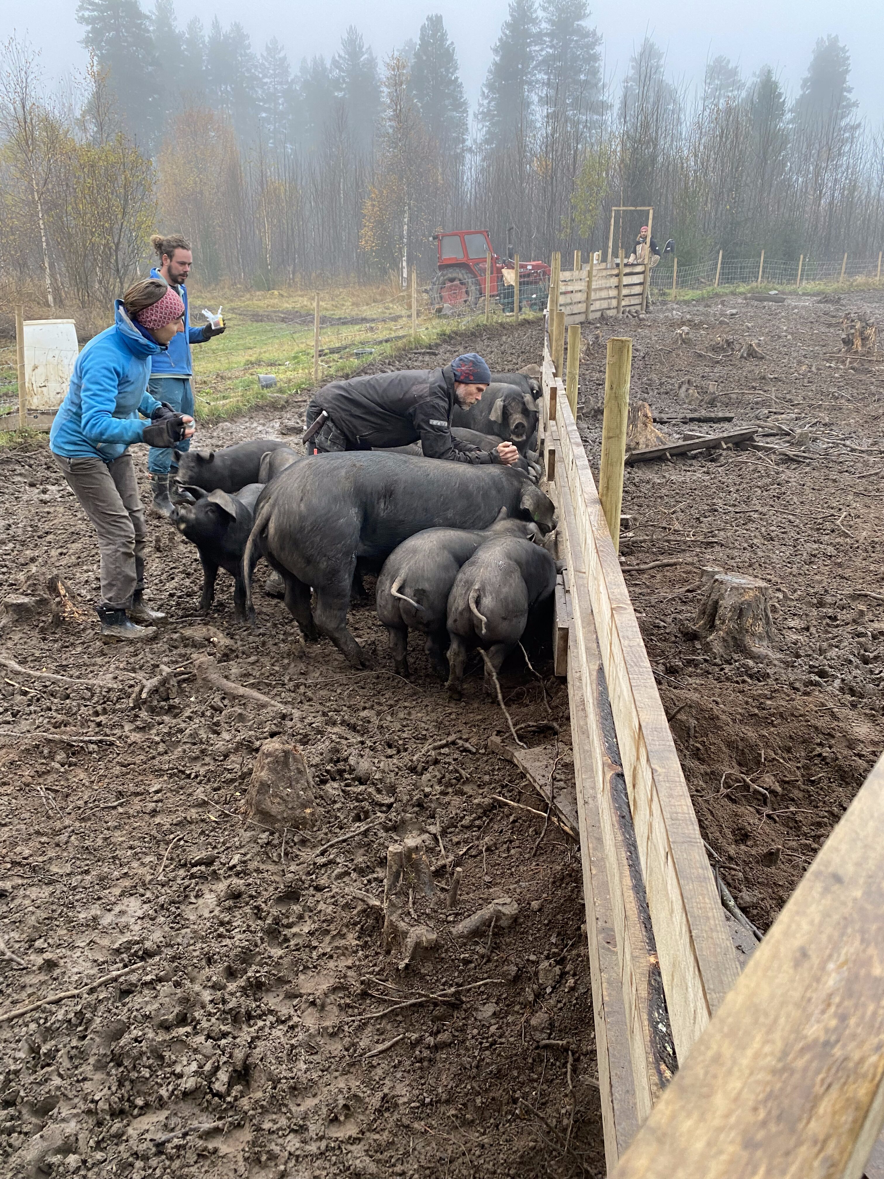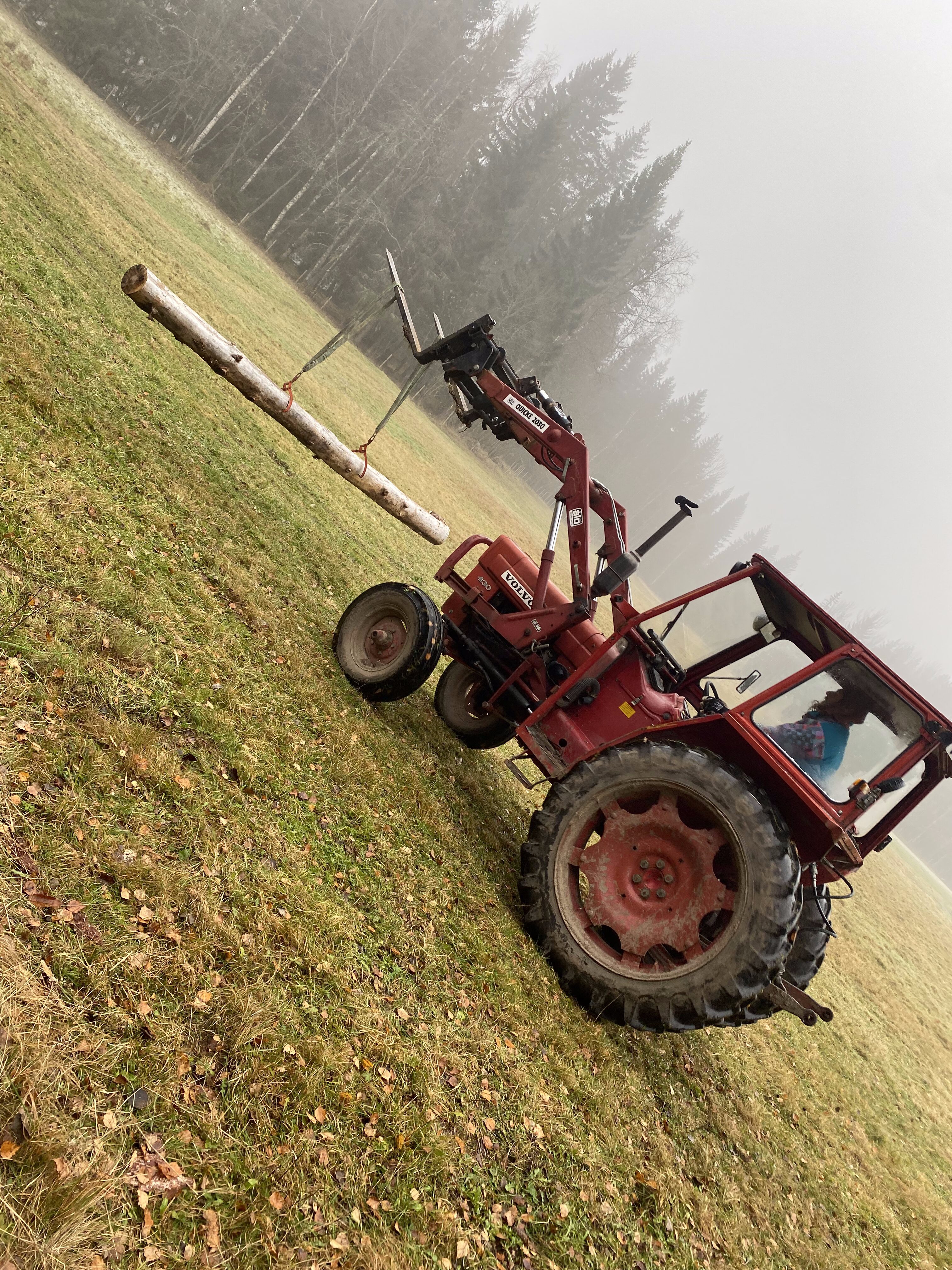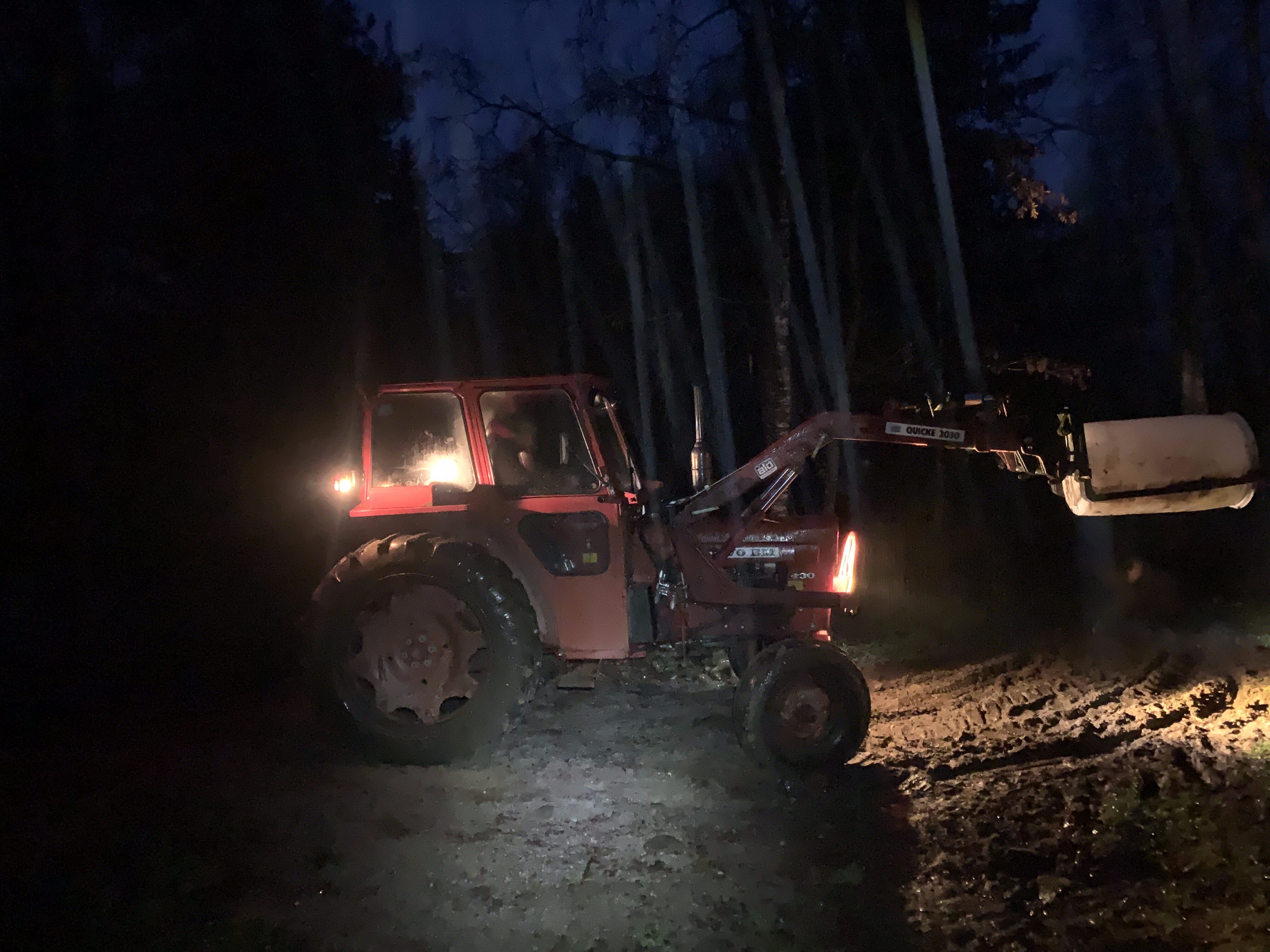 Am morgen, wenn die Luft zu gefrieren droht und die Kälte in den Knochen kitzelt. Nur der Lichtkegel der Kopflampe zeigt ein bisschen, wie die Welt wohl heute aussieht. Über den gefrorenen Boden stapfen, dort hin, wo Hähne schon krähen und Schweine noch schlafen. Erst wenn alle versorgt sind, erfüllt sich der Raum mit wohliger Wärme und dem Geruch von duftendem Kaffee. “How are we today ?” eine halbe Stunde wie gehts uns, was erwartet der Tag von uns ? Arbeit hats genug. Also los, ab in die Schnittschutzhosen, auf in den Traktor, angeschmissen die Sägemühle.
